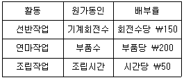 활동기준원가계산을 적용하는 (주)관세는 두 종류의 제품 A, B를 생산하고 있다. 활동 및 활동별 전환(가공)원가는 다음과 같다.
