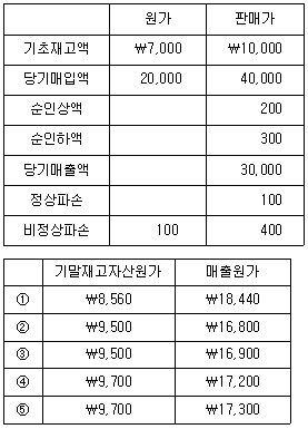(주)관세는 재고자산 평가방법으로 저가기준 선입선출소매재고법을 사용하고 있다. 재고자산과 관련된 자료가 다음과 같을 때, 기말재고자산원가와 매출원가는?