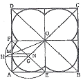 정사각형에 내접하는 가장 큰 접속 반원 그리기에서 작도내용 중 틀린 것은?
