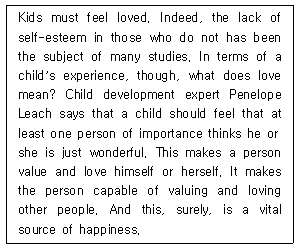 아이가 행복하려면 중요한 사람에게 인정받아 생기는 자존감이 필요하다.