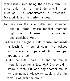 주어진 글 다음에 이어질 글의 순서로 가장 적절한 것은?