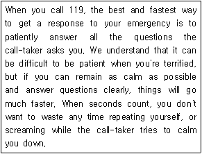 119에 전화할 때는 침착하게 상담원의 질문에 대답하여야 한다.