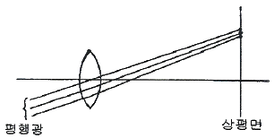 그림과 같이 off-axis ray의 입사높이와 시야각에 따라 상평면상에 빛이 모이는 점이 변화하는 수차와 거리가 먼 것은?