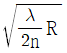 얇은 렌즈의 곡률반경이 R이고, 이 렌즈와 평판사이의 굴절률이 n인 뉴톤링 실험장치가 있다. 반사광에 의한 뉴톤링 무늬에서 첫 번째 어두운 무늬의 반경은 얼마인가? (단, 사용된 파장은 λ 이다.)