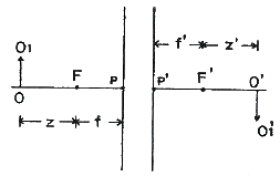 얇은 렌즈에의해 그림과 같이 결상될 때 물체로부터 제1초점까지의 거리가 z, 제1초점거리가 f, 제2초점거리가 f′ 그리고 제2초점으로부터 상까지의 거리가 z′ 일 때 Newton의 방정식은?