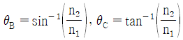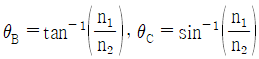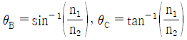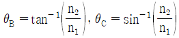 굴절률이 n1인 매질로부터 n2인 매질로 전파되는 광에 대하여 경계면에서의 브루스터각(Brewster angle, θB)과 임계각(critical angle, θC)에 대한 표현이 옳은 것은? (단, n1>n2 이다.)
