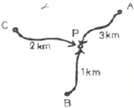 그림과 같이 P점의 높이를 직접 수준측량에 의해 구했을 때 P점의 최확값은? (단, A→P=21.542m, B→P=21.539m, C→P=21.534m이다.)