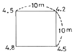 가로 10m , 세로 10m의 정사각형 토지에 기준면으로부터 각 꼭지점의 높이의 측정 결과가 그림과 같을 때 전토량은?