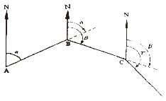 트래버스 측량의 수평각 관측에서 그림과 같이 진북을 기준으로 어느 측선까지의 각을 시계 방향으로 각 관측하는 방법은?