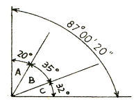 그림에서 ∠A 관측값의 오차 조정량으로 옳은 것은? (단, 동일조건에서 ∠A, ∠B, ∠C와 전체 각을 관측하였다.)