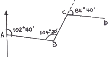 그림에서 CD 측선의 방위는?