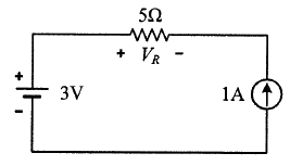 회로에서 저항 5Ω의 양단 전압 VR(V)은?
