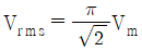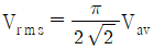 정현파 교류전압의 최댓값이 Vm(V) 이고, 평균값이 Vav(V)일 때 이 전압의 실횻값 Vrms(V)는?