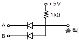 다음 회로에서 출력전압은 몇 V인가? (단, A=5V, B=0V인 경우이다.)