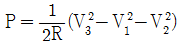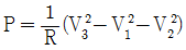 단상전력을 간접적으로 측정하기 위해 3전압계법을 사용하는 경우 단상 교류전력 P(W)는?