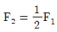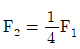 평행한 두 도선 사이의 거리가 r이고, 각 도선에 흐르는 전류에 의해 두 도선 간의 작용력이 F1일 때, 두 도선 사이의 거리를 2r로 하면 두 도선 간의 작용력 F2 는?