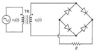 그림과 같은 정류회로에서 R에 걸리는 전압의 최대값은 몇 V 인가? (단, v2(t) = 20√2 sinωt 이다.)