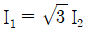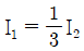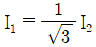3상 농형 유도전동기를 Y-△ 기동방식으로 기동할 때 전류 I1(A)과 △결선으로 직입(전전압) 기동할 때 전류 I2(A)의 관계는?