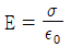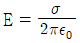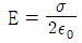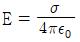 진공 중 대전된 도체의 표면에 면전하밀도 σ(C/m2)가 균일하게 분포되어 있을 때, 이 도체 표면에서의 전계의 세기 E(V/m)는? (단, ε0는 진공의 유전율이다.)