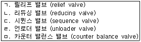 다음 보기에서 분기 회로에 사용되는 밸브만 골라 나열한 것은?
