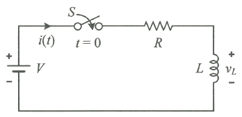 그림과 같은 회로에서 스위치 S를 t=0에서 닫았을 때