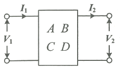 그림과 같은 4단자 회로망에서 출력 측을 개방하니 V1=12V, I1=2A, V2=4V이고, 출력 측을 단락하니 V1=16V, I1=4A, I2=2A이었다. 4단자 정수 A, B, C, D는 얼마인가?
