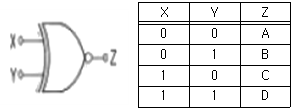 그림의 논리회로에 대한 진리표의 A, B, C, D에 결과값을 순서대로 표현하였을 경우 옳은 것은?
