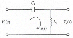 V1(s)을 입력, V2(s)를 출력이라 할 때, 다음 회로의 전달함수는? (단, C1=1, L1=1H)