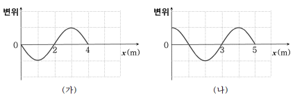 그림 (가)는 +x방향으로 일정한 속력으로 진행하는 사인파 A의 t=0일 때의 모습을 나타낸 것이고, (나)는 t=1/8초일 때 (가)에서 A가 +x방향으로 진행한 모습을 나타낸 것이다.