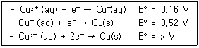 다음은 25℃에서 구리와 관련된 반응의 표준 환원 전위(Eo)이다. x는?