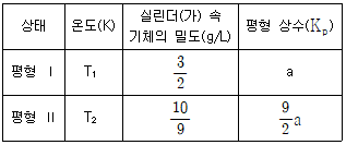 표는 콕을 열어 반응이 일어날 때, 서로 다른 평형Ⅰ과 Ⅱ에 대한 자료이다.