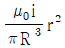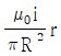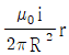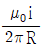 시간에 따라 변하는 폐곡선 내부의 전기장 선속은 자기장을 유도하고, 폐곡선 내부에 변위전류를 유도한다. 반지름이 R인 원형 평행판 축전기가 시간에 따라 변하는 전류 i로 충전될 때, 평행판 사이 중심축으로부터 r만큼 떨어진 위치에 유도되는 자기장의 크기를 옳게 나타낸 것은? (단, μ0는 진공의 투자율이며, 평행판 사이의 전기장은 매 순간 균일하고 가장자리 효과는 무시한다.)