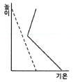 이 지역의 대기 상태를 잘 나타낸 것은? (단, 점선은 단열선, 실선은 기온선이다.)