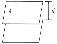그림과 같이 넓이가 A인 동일한 금속 평면 판이 간격 d를 유지하고 있을 때, 전기용량은 C0 이다. 금속판의 넓이를 2A, 간격을 d/2로 할 때 전기용량은? (단, 판 사이는 진공이고, 가장자리 효과는 무시한다.)