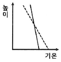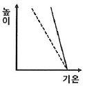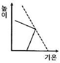 이 지역의 대기 상태를 옳게 나타낸 것은? (단, 실선은 기온선, 점선은 건조단열선이다.)