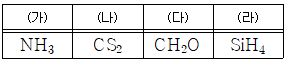 다음은 4가지 분자 (가)~(라)를 나타낸 것이다.
