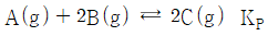 다음은 A(g)와 B(g)가 반응하여 C(g)가 생성되는 반응의 평형 반응식과 압력으로 정의되는 평형 상수(KP)이다.