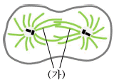 그림은 분열 중인 동물세포를 나타낸 것이다. (가)는 중심체로부터 뻗어 나온 섬유이다.