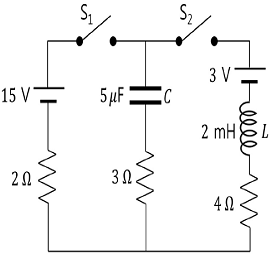그림의 회로에서 스위치 S1과 스위치 S2를 동시에 닫은 순간에 충전되지 않은 축전기 C를 지나는 전류는 Ii 이다. 또한 S1과 S2를 닫은 후 충분히 오랜 시간이 흘렀을 때, 코일 L을 지나는 전류는 If에 가까워진다. 이때 If/Ii로 옳은 것은?