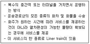 다음에서 설명하고 있는 철도운송 서비스 형태는?