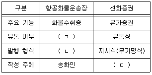 다음은 항공화물운송장과 선화증권을 비교한 표이다. ( )에 들어갈 내용을 순서대로 나열한 것은?