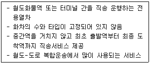 다음에서 설명하고 있는 철도운송 서비스 형태는?