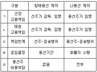 항해용선 계약과 나용선 계약을 구분한 것으로 옳지 않은 것은?