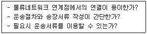 다음은 운송수단 선택 시 고려해야 할 사항이다. 이에 해당하는 요건은?