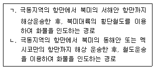 다음은 부산항에서 미국 내륙의 시카고로 향하는 화물의 복합운송경로이다. 각각의 설명에 해당하는 것을 올바르게 나열한 것은?