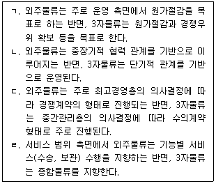 외주물류(아웃소싱)와 3자물류에 관한 설명 중 옳지 않은 것을 모두 고른 것은?