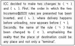 IncotermsⓇ2020 소개문의 일부이다. ( )에 들어갈 용어로 올바르게 나열된 것은?