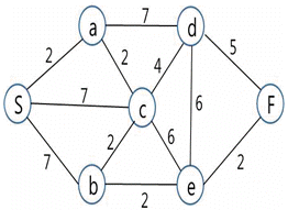다음 네트워크에서 출발지 S로부터 도착지 F까지 최단경로의 거리는? (단, 경로별 숫자는 km임)