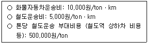 다음 조건에서 채트반공식을 이용한 화물자동차운송과 철도운송의 경제효용거리 분기점은?