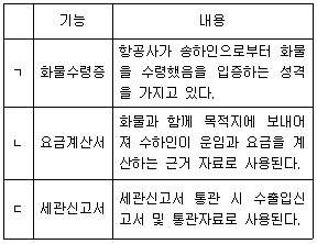 항공화물운송장 기능과 내용으로 옳은 것을 모두 고른 것은?